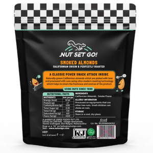 These are High quality smoked almonds making it super tasty Get ready to embark on a smoky flavor adventure with our fantastic almonds! These little flavor bombs pack a mighty punch of smokiness that'll have your taste buds doing the tango. If you're looking for the ultimate pairing with your evening drink, you've hit the jackpot. But the fun doesn't stop there – we're so nuts about them that we can't resist diving straight into the pouch for a crunchy delight. These are no ordinary almonds; they're high-quality, expertly smoked to perfection, and super tasty. So whether you're sipping a beverage or just seeking a savory snack, these smoky wonders are here to make your day smokier and tastier!